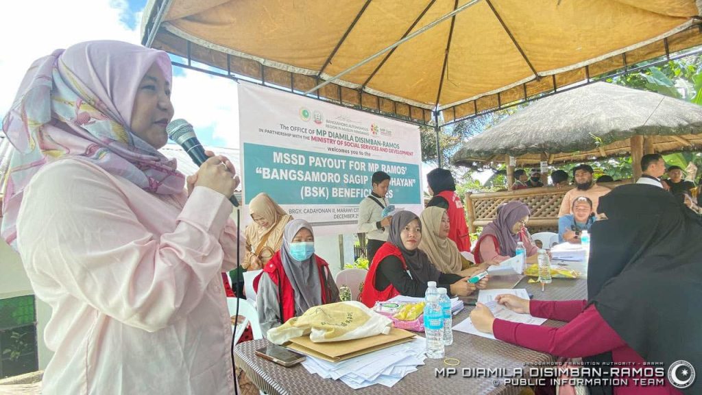 Naipagkaloob na sa ating 100 benepisyaryo ang tulong pinansyal sa ilalim ng 𝗕𝗮𝗻𝗴𝘀𝗮𝗺𝗼𝗿𝗼 𝗦𝗮𝗴𝗶𝗽 𝗞𝗮𝗯𝘂𝗵𝗮𝘆𝗮𝗻 (𝗕𝗦𝗞), ngayong Disyembre 29, 2023 sa Brgy. Cadayonan II, Marawi City, Lanao Del Sur. Ang programang ito ay naglalayong makapagbigay ng seed capital para sa dagdag na puhunan para sa kanilang negosyo. Nakatanggap ng Php 15,000.00 ang 100 na beneficiaries mula sa ating mga scholars sa Bangsamoro Scholarship Program for Technical Vocational Education Trainings (BSPTVET) at nakatanggap rin sila ng karagdagang Php 14,400 para sa Rice Subsidy na ipinagkaloob din ng Ministry of Social Services and Development na may kabuuang Php 29,400.